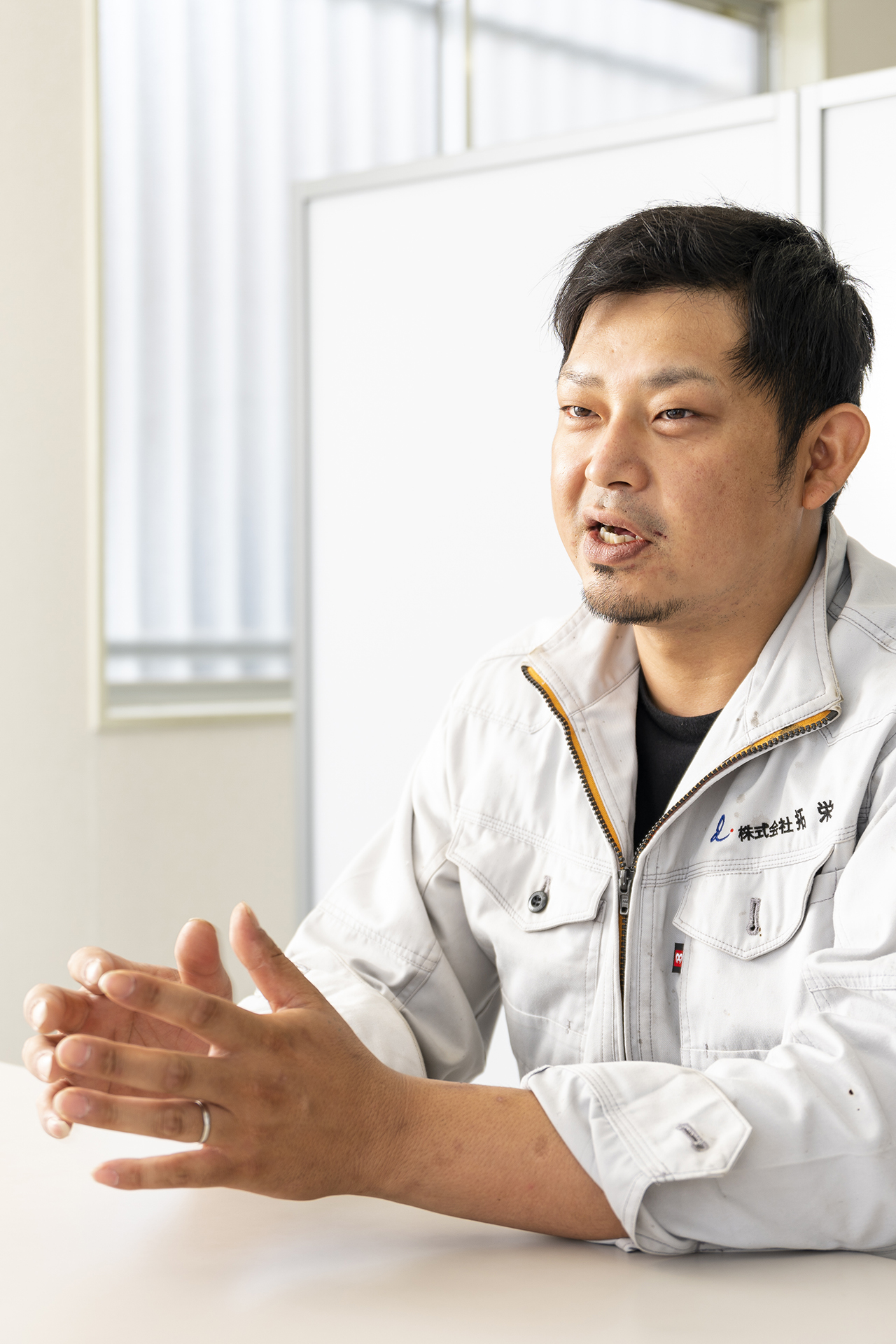 同前社長とは先輩後輩の間柄で、仕事も一緒にする仲でした。法人にするタイミングで拓栄の社員になって以来、会社を大きくするための方法を社長とともに考え、実行しています。